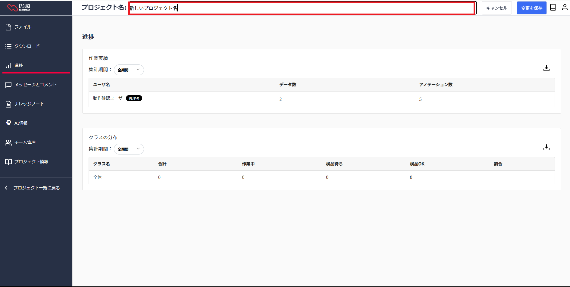 - プロジェクト名の変更: プロジェクト詳細画面からプロジェクト名を変更することができます。