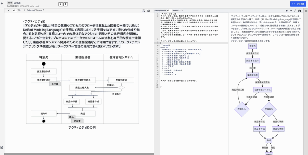 本機能は、画像認識と機械学習の技術を駆使して、図表の書き起こし(構造化)を行う機能です。 自動構造化で上手く構造化できなかった図表に対してやり直しを行えるサポート機能という位置付けです。